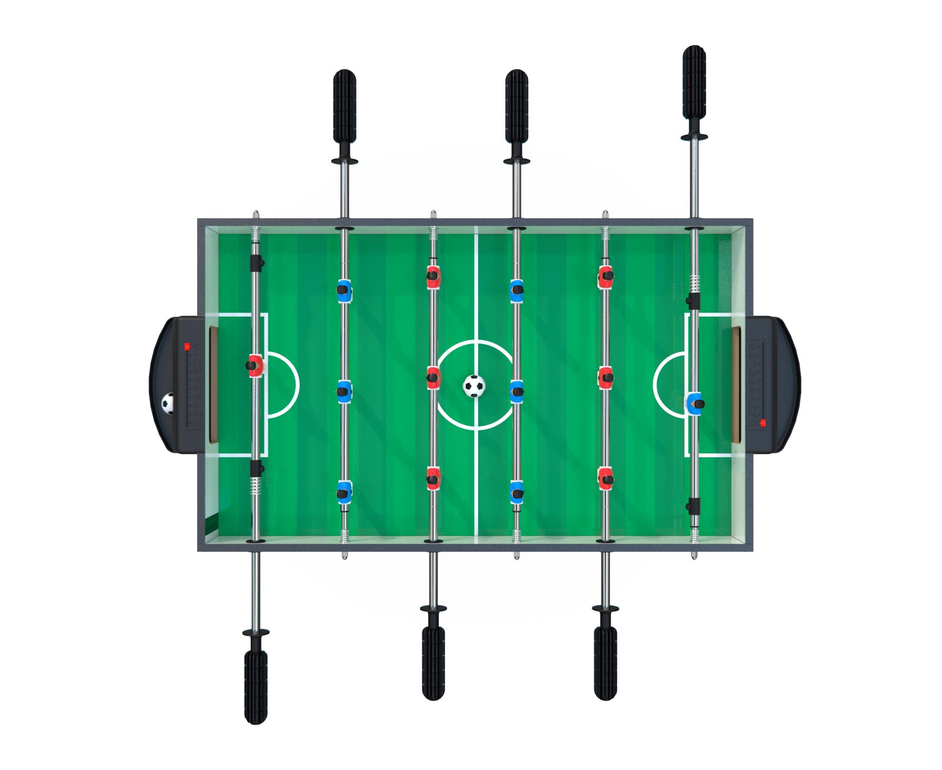 Утолщённые телескопические стержни диаметром 12,7 мм уже в сборе с игроками высотой 100 мм. Ножки толщиной 9 мм, перекладина между ножками толщиной 4,2 мм